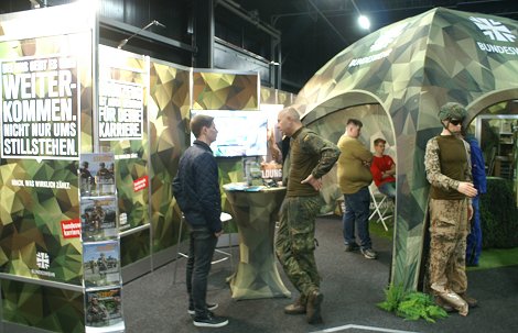 Staatliche Institutionen wie Finanzamt, Zoll oder Amtsgericht konnten da nur mit wenigen, trockenen Plakaten dagegenhalten. Die Aussteller mußten gezielt die jungen Besucher ansprechen, um ihre eher theoretischen Berufsdarstellungen unter die erhofften Bewerber zu bringen. So war das Arbeitsamt war als Gesprächspartner ebenso weniger gefragt. Kugelschreiber, Energie-Getränke oder Schlüsselbänder waren die Souvenirs, die somit tatsächlich in Erinnerung blieben.